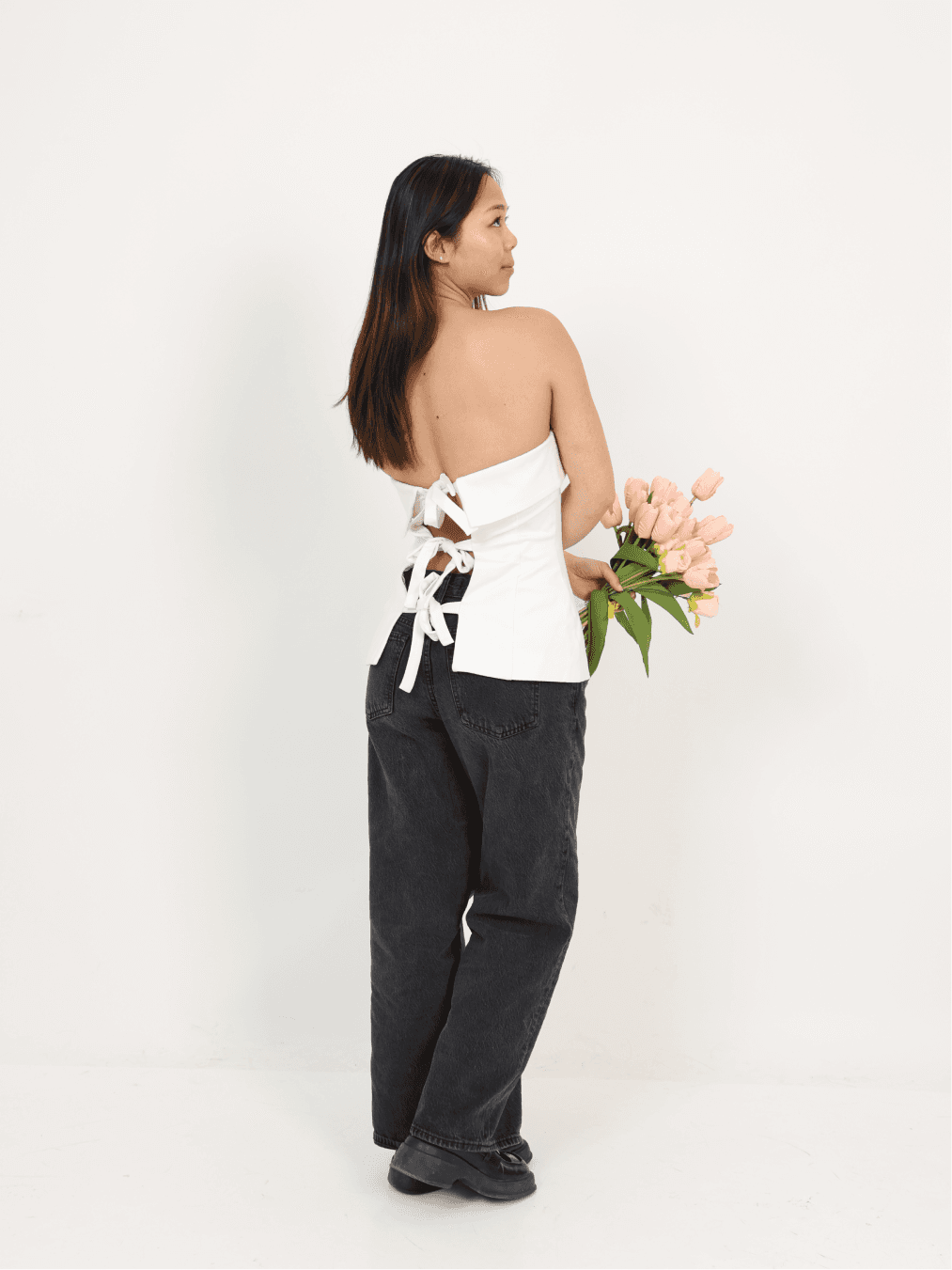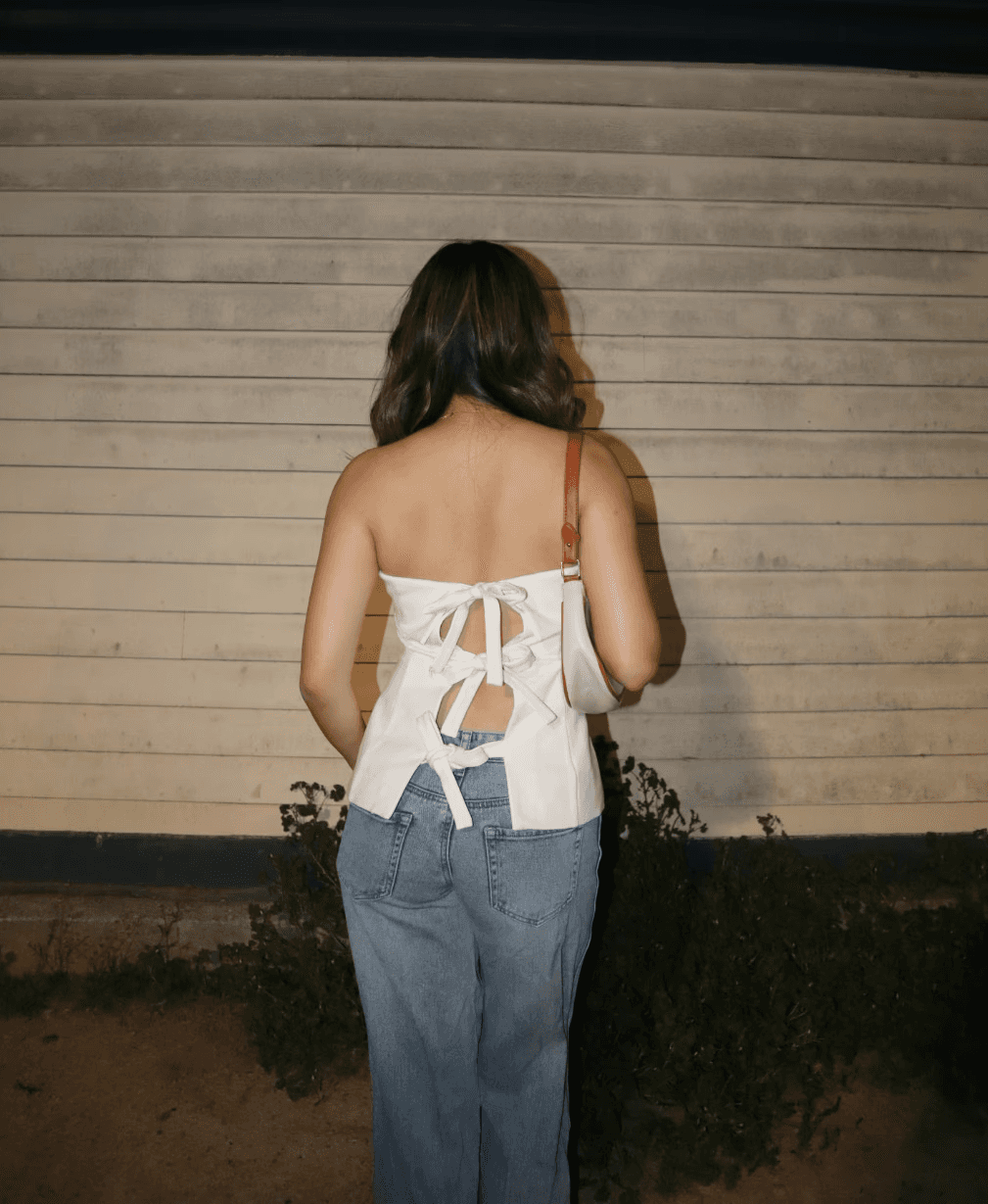 A home-designed and handcrafted white tube top with 3 bow details down the back. Minimal in the front, special where it counts. Made slowly, in small quantities.
